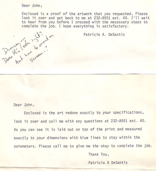 Some just couldn't get the simplest things.  Patricia A. DeSantis had to position accurately (this was pre-CAD).  Eek!  I like the understated "redone exactly to your specifications" on her second try.