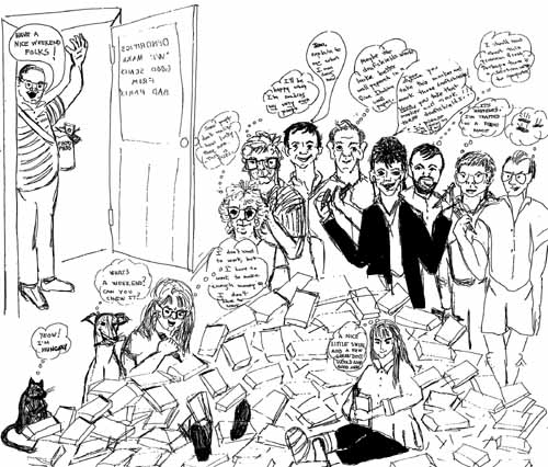 There were a dozen or so people at any one time who directly contributed to the Gemscales which made their way out into the world.  Here you can learn a bit about them.  Or at least see what we looked like!  Further images are available by clicking on our names or our images.
